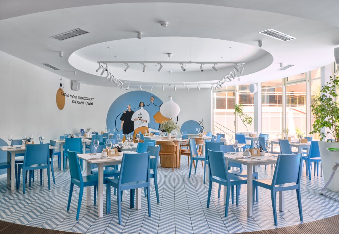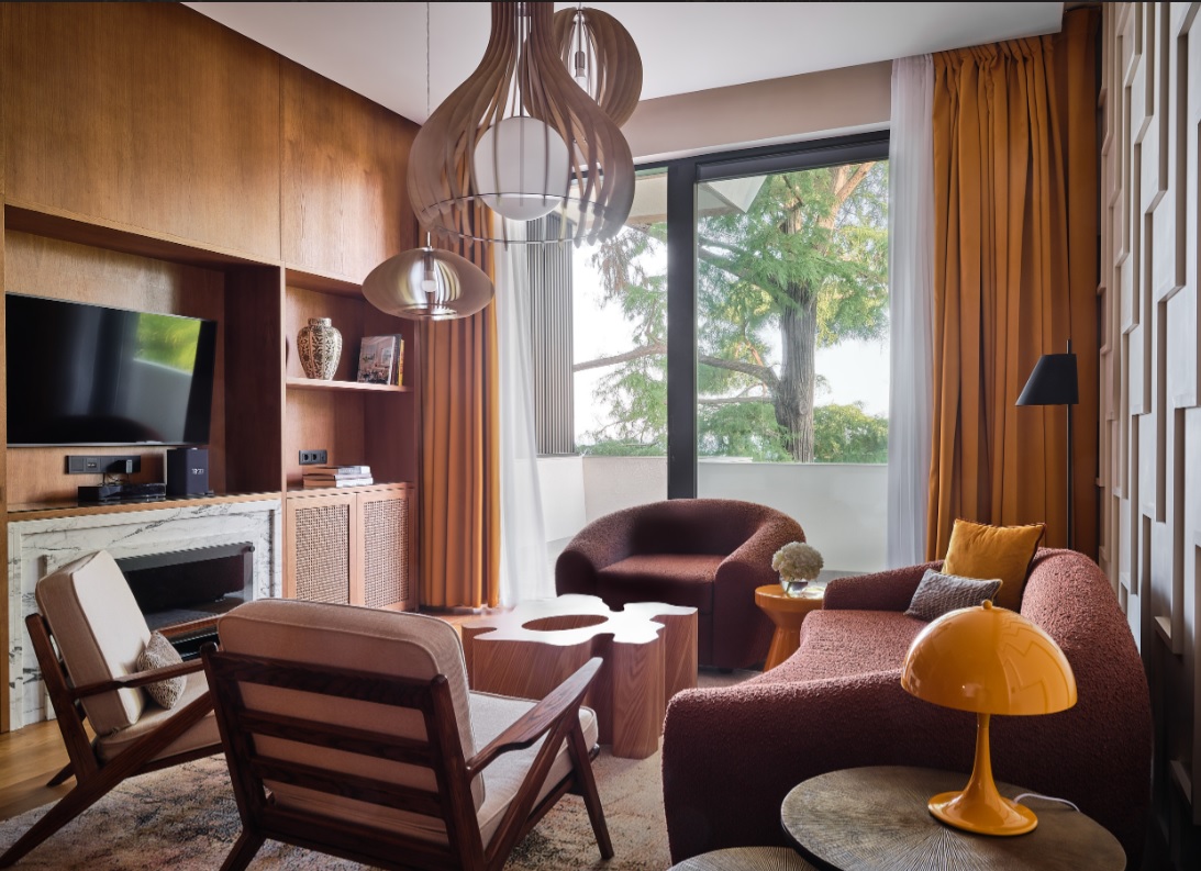 И 8 номеров в здании 1972 года, интерьеры которого оформлены с элементами модернизма и конструктивизма