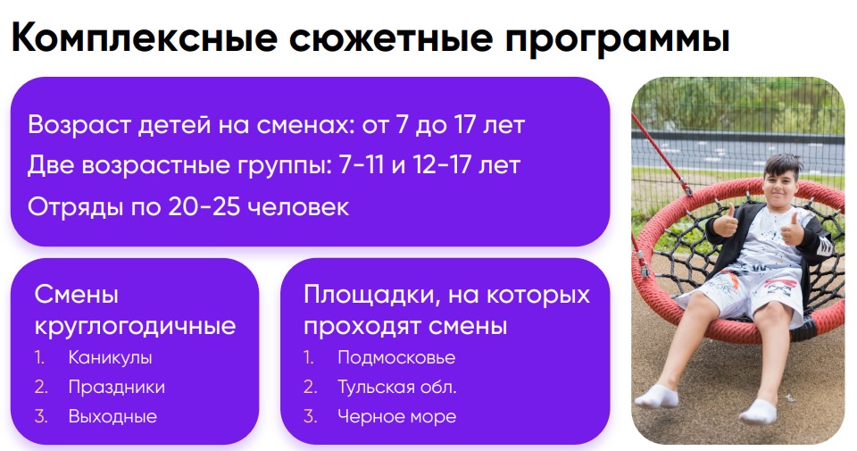 Главной идеей было сделать учёбу и отдых детей более интересными, эффективными и безопасными. Так появились первое направление - сеть премиальных детских языковых лагерей; а за ним и второе - дополнительное образование.