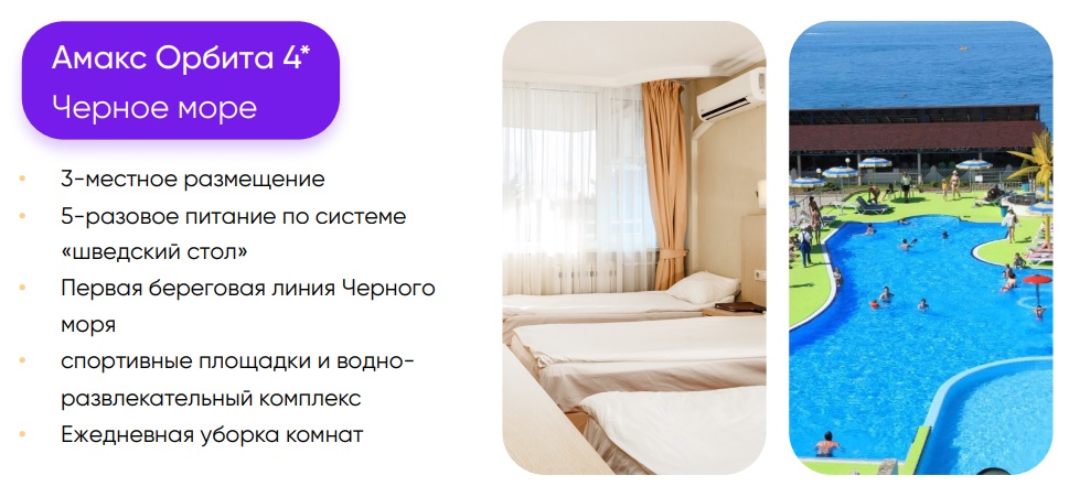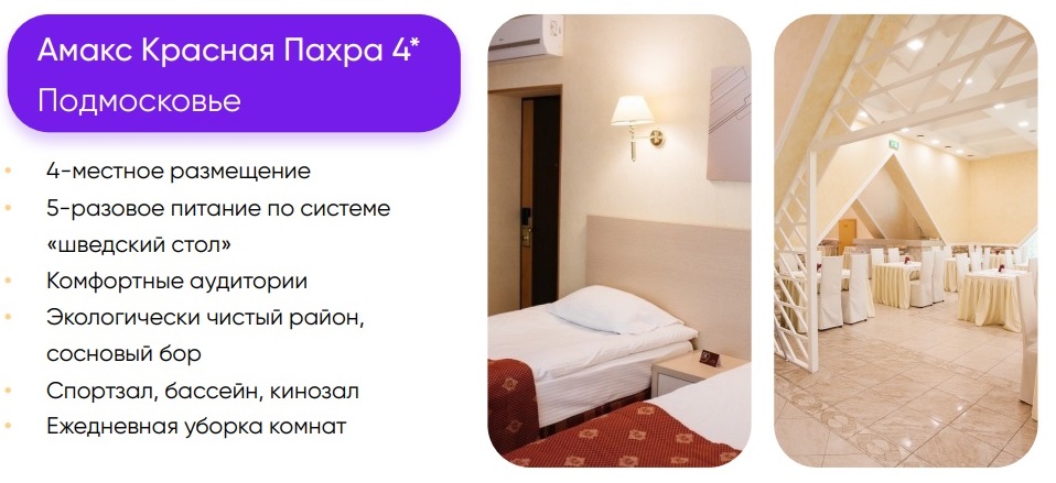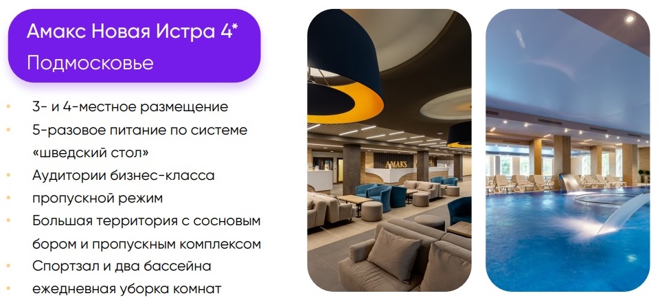 - на базе отелей 4* и центров детского отдыха
